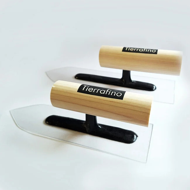 De Tierrafino Japanse spanen zijn speciaal ontwikkeld voor de afwerking van leemfinish, tadelakt en kalkpleisters. Dankzij het dunne, flexibele blad ontstaat een strakke en egale afwerking. Verkrijgbaar in kunststof en metaal, in diverse maten van 18 t/m 27 cm.