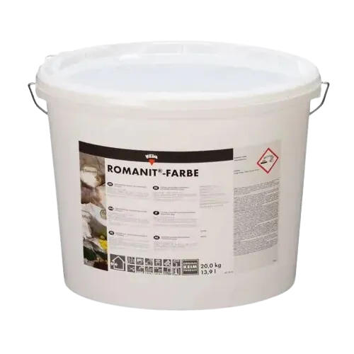 KEIM Romanit-Farbe is een hoogwaardige, natuurlijke kalkverf op basis van zuivere doorngebluste kalk (CL 90-S). Deze verf is speciaal ontwikkeld voor restauraties van monumenten en voor ecologisch bouwen. Dankzij de 100% minerale samenstelling en het dampopen karakter is Romanit-Farbe een uitstekende keuze voor historische pleisters, leemwanden en ademende ondergronden.