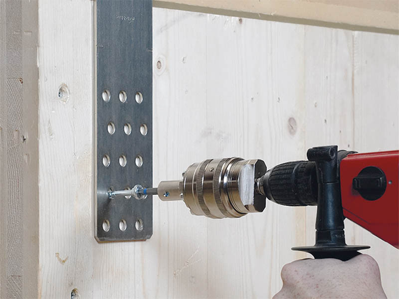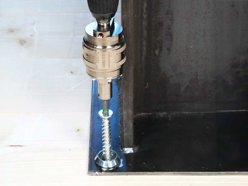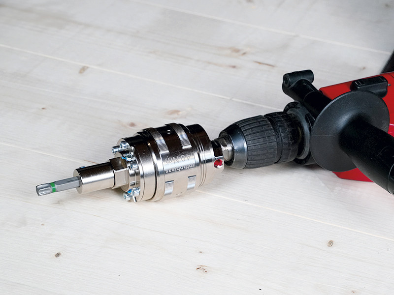 Bij de definitieve montage van de constructie elementen, zijn de schroeven vaak erg lang en vereisen zij een hoge koppel. Hierdoor ontstaat het risico dat de bit op de schroefkop wegglijdt en heeft de lange schroef de neiging te oscilleren tijdens het vastdraaien. Een ander risico van de hoge koppel is het onjuist vastdraaien, wat kan resulteren in structurele en gereedschapsgevaren. Wij adviseren dan ook een koppelbegrenzer te gebruiken zoals de Torque Limiter, die altijd een identieke koppel toepast en zo schade aan gereedschappen, scheuren, of zelfs het breken van materialen kan voorkomen d.m.v. een correcte verbindingsspanning. De specifieke bit kan direct in de bithouder van de Torque Limiter worden geplaatst.