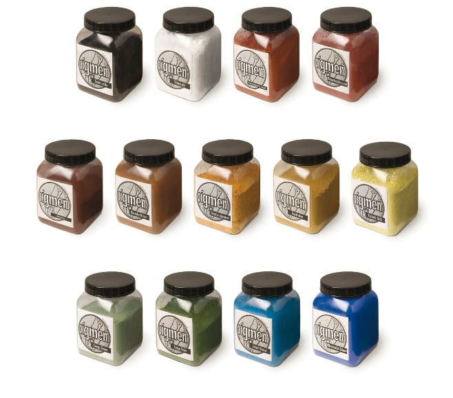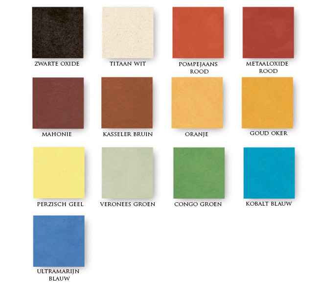 - Ecologische pigmenten op basis van aarde en metaaloxiden.