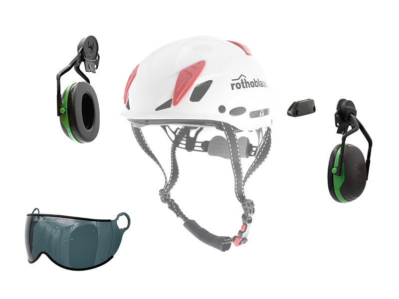 De kinband opent met een druk van tussen de 15 en 25 daN . De interne vulling met een "spinnenweb"-structuur is verwijderbaar en wasbaar voor een betere hygiëne. Een vizier en oorkappen kunnen direct op de schaal van alle PROTECTOR-helmen worden bevestigd .