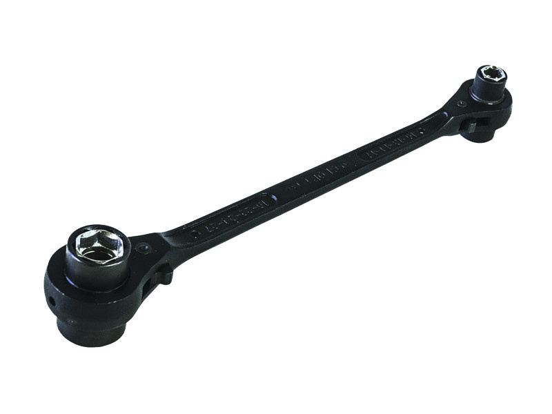 Stalen ratelsleutel met de 8 meest gebruikte maten in één. Met lange geharde stalen handgreep, ideaal voor het effectief vastdraaien van moeren en bouten. De hoogwaardige materialen maken een eenvoudig te wisselen van aandraai- naar losdraaistand.