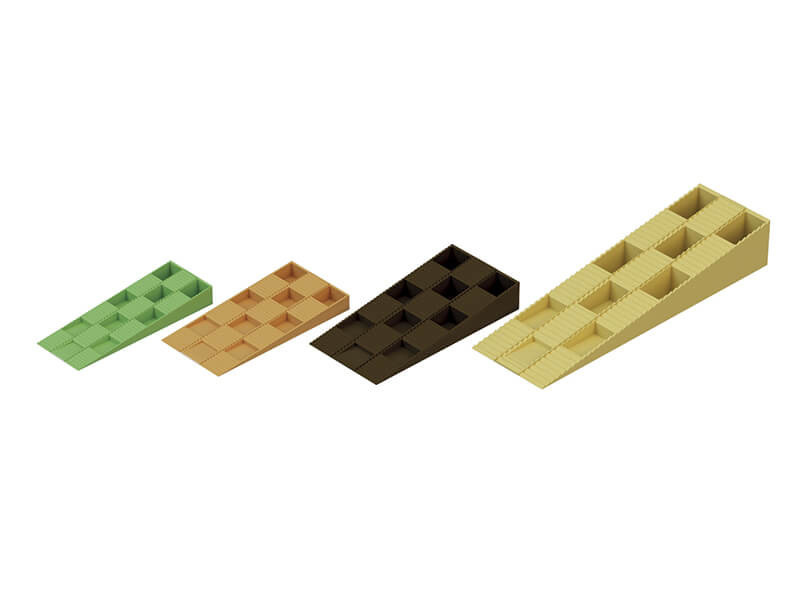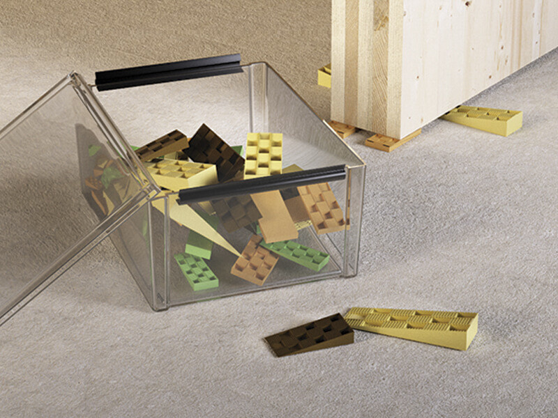 Deze stelwiggen met scherpe vertanding zorgen voor nauwkeurige hoogteverstelling en stevige vergrendeling, ook zijdelings. Weerbestendig en ideaal voor buitengebruik! Te bevestigen met normale houtschroeven.
