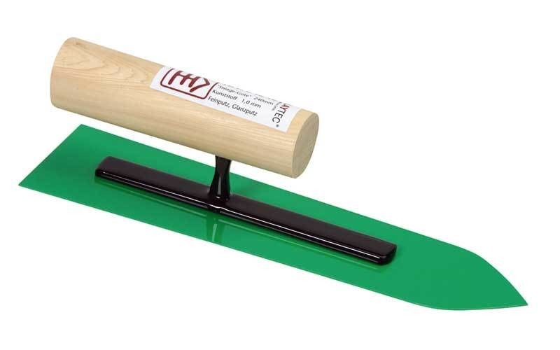 Succesmodel: kunststof, zacht en flexibel blad. Bladdikte 1,0 mm. Rugversterking metaal met kunststof bekleed. Uitsluitend geschikt voor het afwerken van kleifijnpleisters, om bijzonder gladde oppervlakken te verkrijgen.