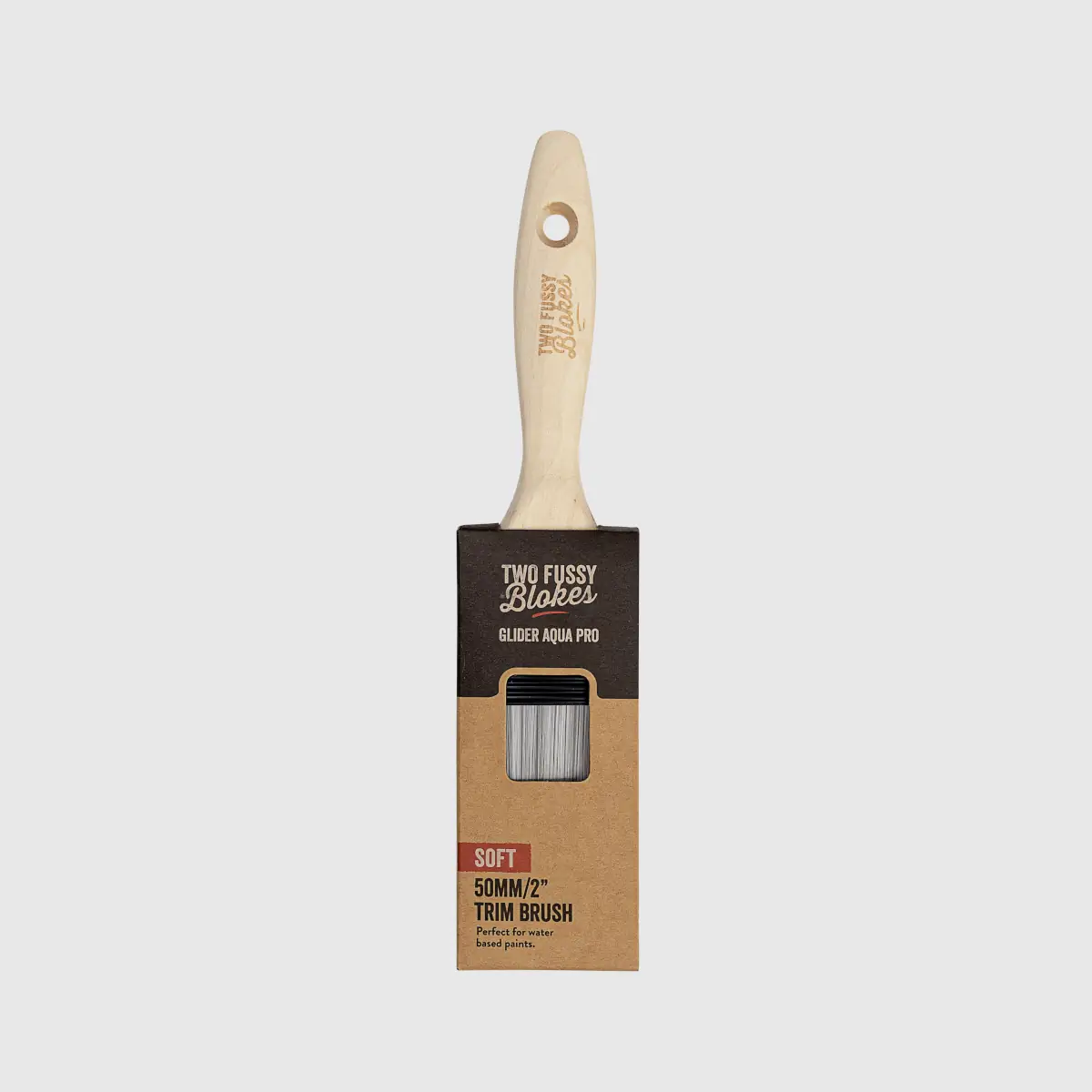 De Two Fussy Blokes Glider Aqua Pro Trim verfkwast soft biedt precisie en controle voor een perfect afgewerkte trim. De zachte, gespleten haren zorgen voor een streeploze applicatie en zijn ideaal voor watergedragen verven. Perfect voor professioneel en d