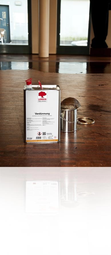 Indien nodig de verdunning altijd alleen porties toevoegen en zorgvuldig roeren. Vlekken van olieachtige producten onmiddellijk met een met verdunning geïmpregneerde doek opnemen. Zo kun je oplosmiddelen besparen: reinig de kwast enz. in een emmer met bijpassende grootte met deksel. Laat pigmenten en verfresten op de grond zakken. Giet de uitstekende, heldere verdunning in een tweede emmer en laat pigment- en verfresten in de eerste emmer. Pigment- en verfresten kunnen volgens de geldende bepalingen worden verwijderd. De gegoten verdunning kan steeds opnieuw worden gebruikt. Vul gewoon af en toe met wat nieuwe verdunning.